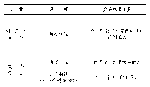 2018年4月四川省自学考试允许携带的