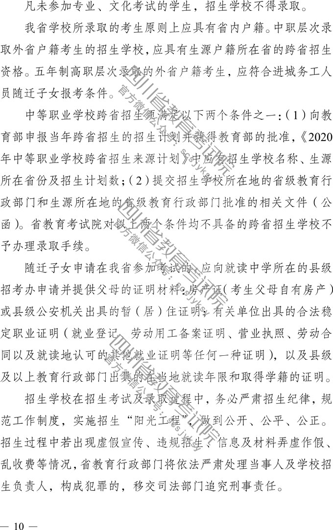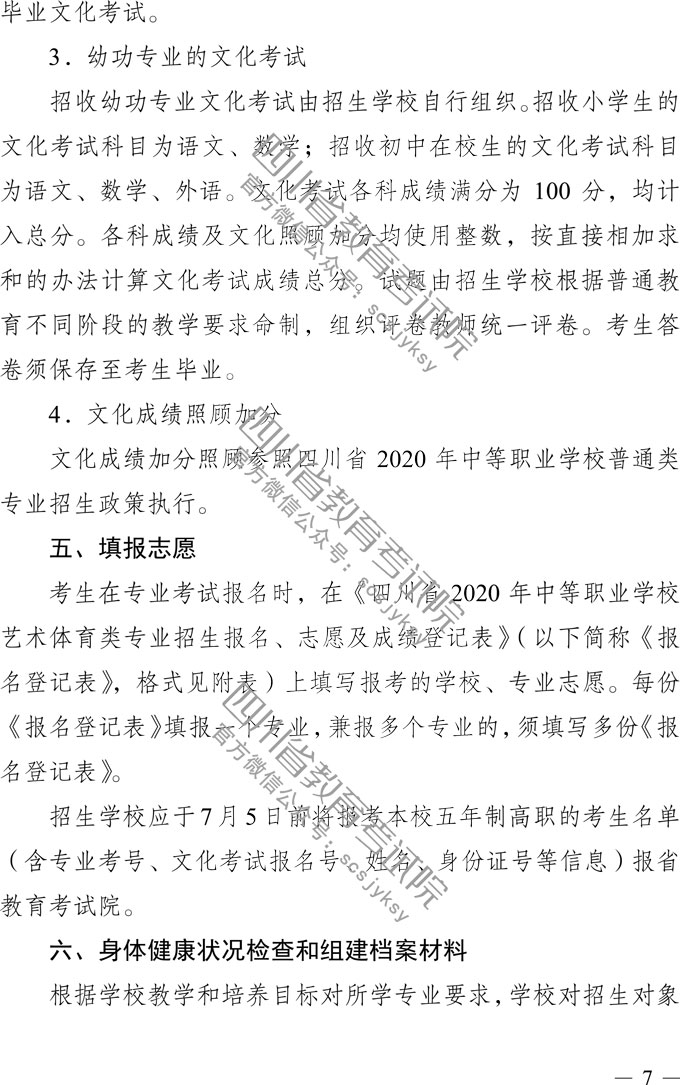 关于印发《四川省2020年中等职业学校艺术体育类专业招生工作实施规定》的通知