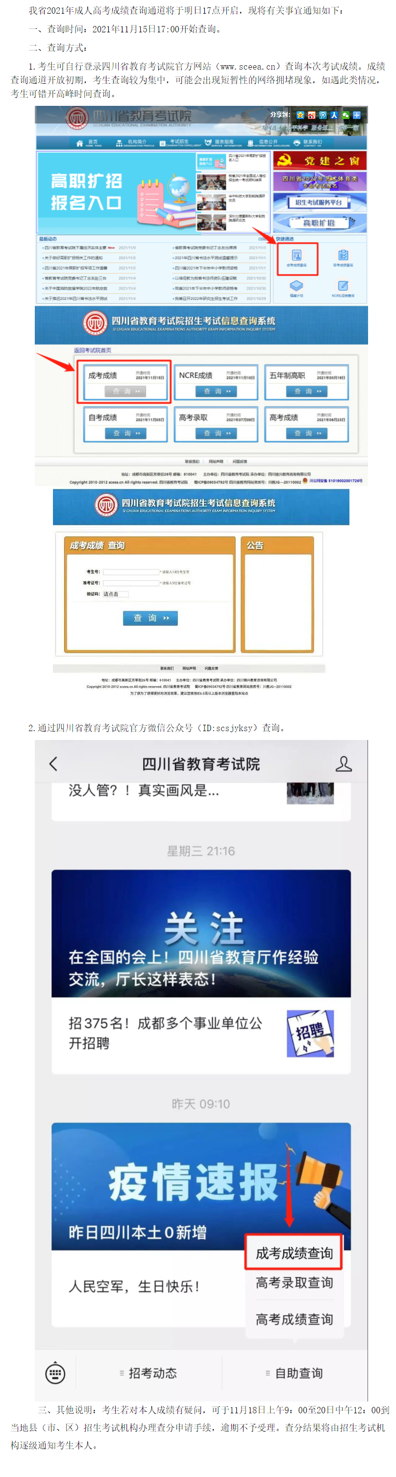 温馨提示:我省2021年成人高考成绩查询通道将于今日17点开启